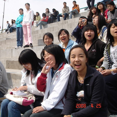 当看到大一新生参加新生运动会兴奋的神情时,一定不会觉得惊讶,但两天的比赛中,和大一同学有着同样激情的大二师同学也在一直坚守。虽然没有参赛,但06级应用心理学班的徐天韵同学却是一直检出到了比赛的最后一刻。脸上的皮肤有被晒伤的痕迹,她却依然淡淡地说:“喜欢看,所以想把比赛看完了。”为师弟师妹们拼命地呐喊助威,为同宿舍同伴的战友鼓励支持。虽然辛苦,却有“我参与,我快乐”的喜悦。