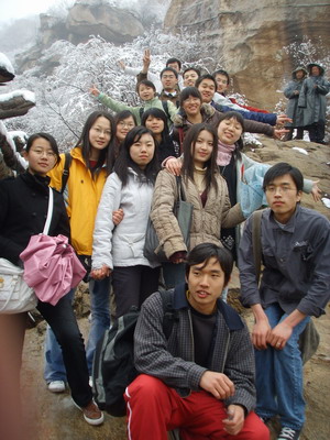 06级心理学班组织了本学期班级第一次活动——春游。出发当天,天下起了雨,淅沥的春雨浇不灭全班同学出游的热情,尽管灰蒙蒙的天空沉默的压抑着,大家还是情绪高涨的坐上了北上的火车,朝着桃源仙谷的方向驶去。