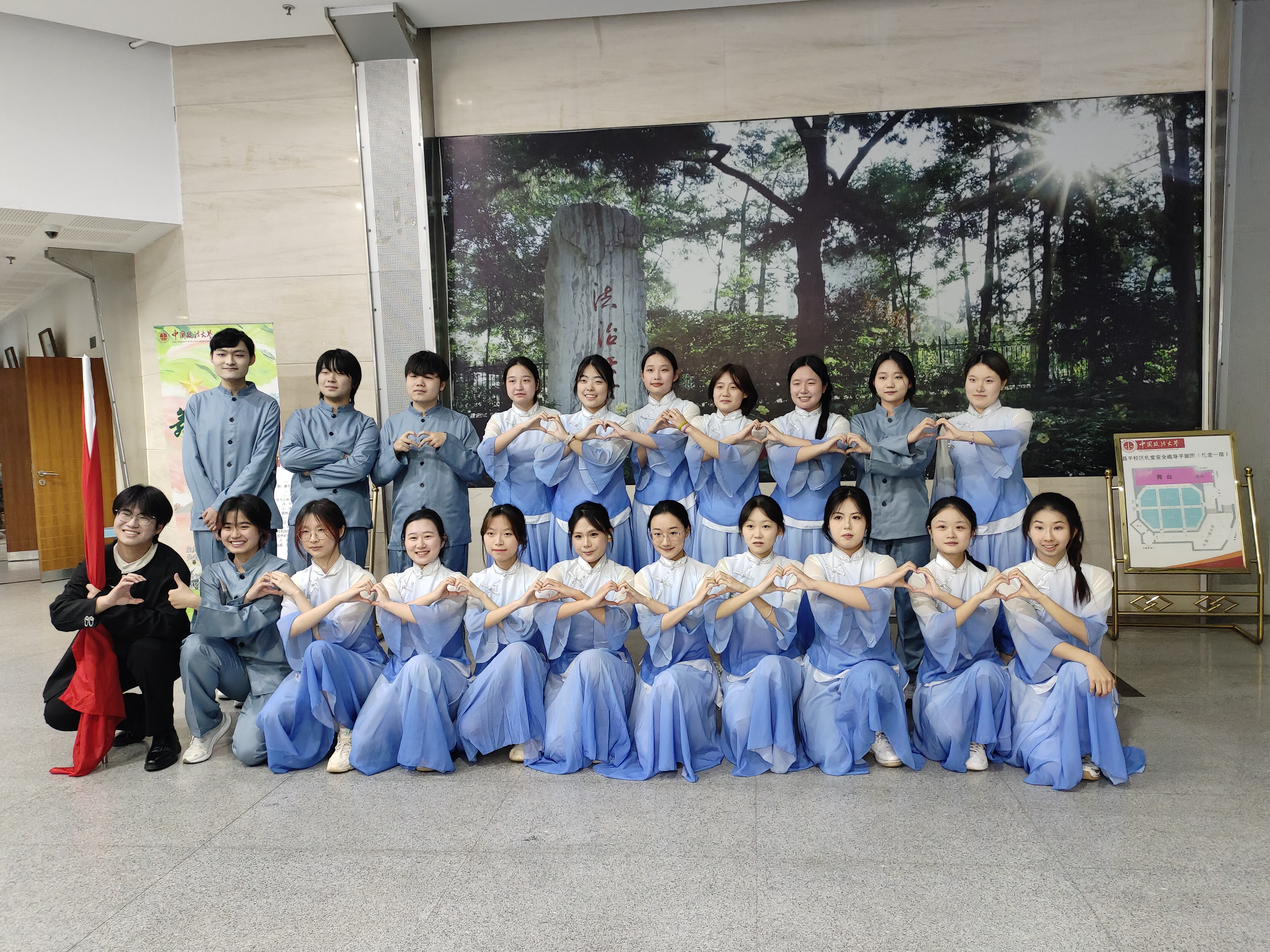 从手臂的伸展角度到舞步的轻重缓急,从眼神的坚定执着到表情的自然流露,哪怕是一个微小的转身、一次轻柔的抬手,都要反复练习上百遍。肌肉的酸痛、汗水浸湿的舞衣、重复练习的枯燥从未让我们有丝毫懈怠,因为每当音乐响起,我们就想到“有我”二字承载的意义——既是对梦想的坚守,也是对团队的责任。