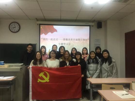研究生的两个党支部分别开展了致敬改革开放四十周年专题学习会,16级党支部的同学们自行观看了由中共中央宣传部、中央广播电视总台联合制作的18集电视纪录片——《我们一起走过——致敬改革开放40周年》。同学们就自己的观后感,结合亲身经历,对改革开放至今国家取得的成就进行发言。