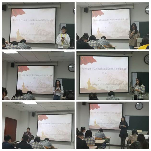 然后同学们分享了学习习近平总书记在纪念五四运动100周年大会上的讲话所带来的启发。