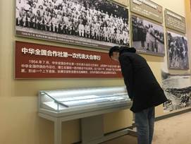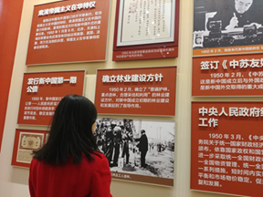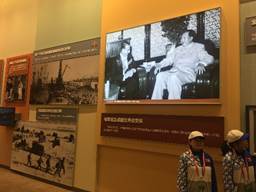 踏入大厅侧面的大门,眼前是一条宽敞而又曲折的长廊,长廊中按时间顺序展示了我国自1949年中华人民共和国成立至今所取得的伟大成就,以及各个重大历史事件的图片和视频展映。置身于历史长廊,仿佛跨越时代长河,近距离接触和感受国家70年来走过的艰辛历程,感受中华民族从站起来到富起来再到强起来的伟大历史变革。随着步伐的迈进,一幕幕历史场景在我们眼前再现,历届英雄模范人物的画像激起我们心中的钦佩和感恩,大家不时驻足停留,为焦裕禄的无私奉献精神赞叹不已,更有群众朋友在旁滔滔不绝地讲述着焦裕禄治理兰考县的伟大事迹,也有同志朋友们立志学习雷锋精神,大赞中国女排为中华人民共和国争光。