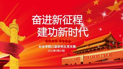 21级研究生党支部在2022年3月24日14时30分,于海淀校区教学图书综合楼0406教室组织开展“奋进新征程 建功新时代”主题活动。该活动由党支部书记周涵主持,支部党员和积极分子参与学习与讨论。本次活动共包括三个部分,首先周涵同志带领大家学习了习近平在《求是》杂志发表的题为《坚持走中国特色社会主义法治道路 更好推进中国特色社会主义法治体系建设》的文章,以及习近平在中央党校(国家行政学院)中青年干部培训班开班式上发表的重要讲话。随后预备党员陈熠分享了自己心中的“红色记忆”,最后所有党员和积极分子进行集体讨论,充分表达了自己的观点和收获,党支书周涵进行总结并向大家说明填写积极分子材料的注意事项。