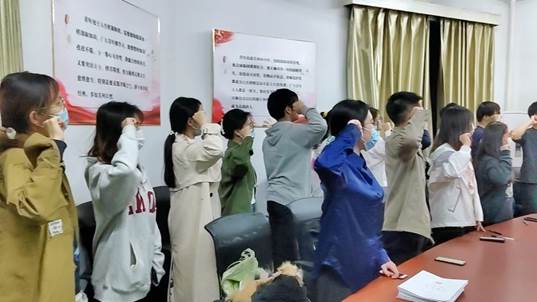 最后。全体党员重温入党誓词,齐唱国际歌。以坚定红色信念,赓续红色血脉,弘扬党的优良传统。