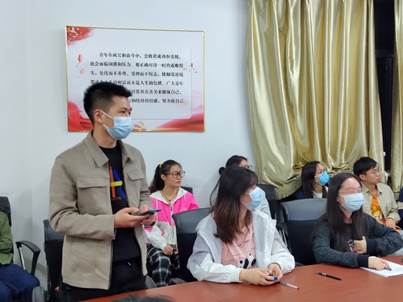 党支部优秀党员、心理1901班陈星宇就自身志愿经历分享经验。陈星宇回忆道,疫情初发期,当时作为入党积极分子的他,义无反顾地加入防疫志愿者的队伍中,担起小区体温监测和人员流动信息登记的责任。面对困难群众,他出主意、想办法、做实事,积极沟通协调各方,服务群众。他说,面对疫情肆虐,他虽有畏惧,但对比抗疫在一线的医务人员与工人,自己所面对的风险和困难都不算什么。