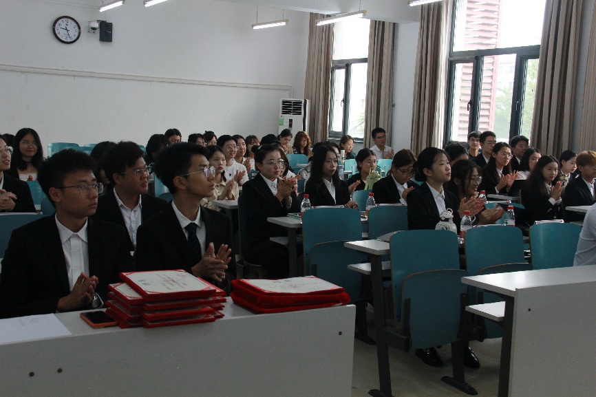颁发结束,唐铭泽上台讲话,他对本次活动作了简明扼要的总结。他首先对学生会和学委会全体成员积极热情的工作面貌给予了高度的赞扬与肯定,接着对同学们提出了几点期许。