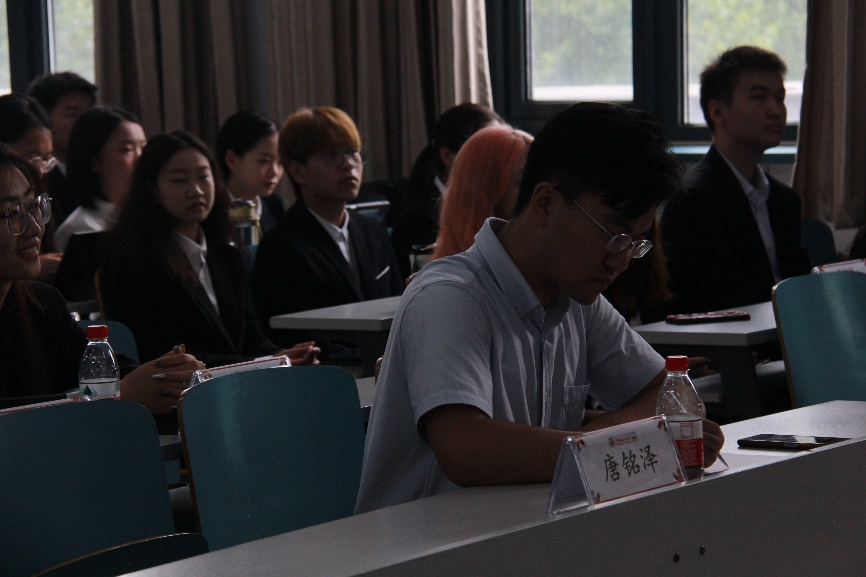 权益部段泽昊作为学委会部员代表发言。他以校园生活和社团工作作楔,讲述了入学以来的所见所感,并表达了加入禁漫 大家庭的喜悦和憧憬。在他的发言中,“爱”这个字贯穿始终,他既感动于初入法大便感受到的来自老师与同学的关爱,也立志要将这份爱传递下去。