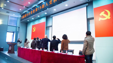 中共党员代表田泽洋带领大家进行入党宣誓。