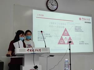 The reporters in the first group are Chen Qin and Zhang Heqi. First, Chen Qin reported that the internship place is the diversified mediation center of contradictions and disputes in Fangshan District, Beijing. Chen Qin’s internship in the mediation center is mainly divided into four parts for reporting, including institution introduction, job introduction, internship discovery and reflection and personal growth. Chen Qin was mainly responsible for sorting out past cases, preparing training materials, participating in legal publicity and case receiving observation. The mediation center applies information communication technology to mediation practice, which effectively improves the success rate of the center in mediation and greatly reduces the time required for mediation. After that, Chen Qin reflected on her internship and pointed out that the combination of technology and mediation will become the norm and it is needed to classify the cases that require mediation and cultivate mediation skills to deal with different disputes. Next, Zhang Heqi reported on her findings and personal growth in his internship. He believed that there was a fit between the mediation center and judicial social work in terms of operation mode, value orientation, basic principles, social management function and work ability, and that she lacked experience and reserves of legal knowledge. At last, the two students said that the internship in the mediation center was a rare experience, which showed the difficulty of combining social work theory with practice, and helped to abandon prejudice, maintain rationality and realize personal growth.